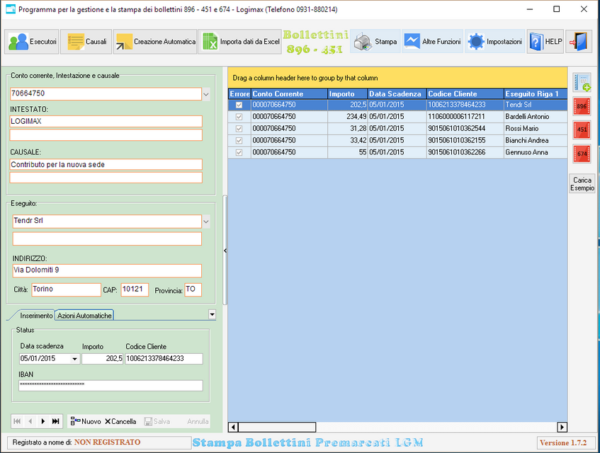 | | Il bollettino Poste italiane, permette ai correttisti BancoPosta di incassare crediti di qulunque natura su tutto il territorio nazionale. E' disponibile in 4 tipologie: bollettino premarcato TD896, parzialmente premarcato TD 674, bianco personalizzato TD 451. Con il nostro programma potete stampare tutte e tre questi tipi di bollettini. Prima di essere messo in commercio le stampe sono state sottoposte ad autorizzazione da parte di Poste Italiane |